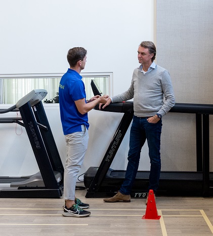 Gefascineerd kijkt David rond, terwijl Jelle hem alles vertelt over hun sportprogramma’s. “WYzorg is een actieve dagbesteding voor mensen met hersenletsel en andere chronische aandoeningen. Een paar jaar geleden besloten we NAH-zwemmen toe te voegen, en vorig jaar ook aangepaste crossfit. We vinden het belangrijk dat ook mensen met NAH de mogelijkheid krijgen om te sporten. Passend bij iemands interesses en niveau en onder de juiste omstandigheden. Het is elk jaar weer een puzzel hoe we alle kosten hiervoor kunnen dekken. Daarom zijn we zo blij met giften zoals de Sport-en Beweegsubsidie van de Hersenstichting. Daardoor hebben dit soort initiatieven kans van slagen.”