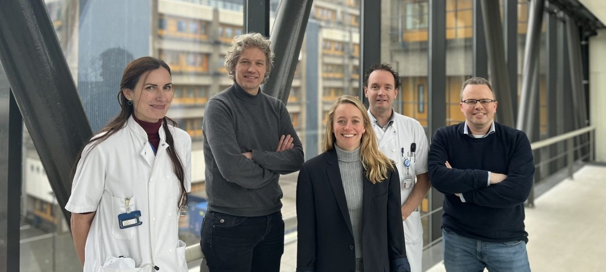 De Hersenstichting draagt met €399.902 bij aan een onderzoek van het Leids Universitair Medisch Centrum. Het onderzoek wordt geleid door dr. Joost Vermaat (tweede van links op de foto). Zijn onderzoeksteam wil meer weten over het risico op hersenschade na behandeling van lymfklierkanker. Dat is nodig om de behandeling te verbeteren en beter te kunnen kiezen wat de meest passende behandeling is.